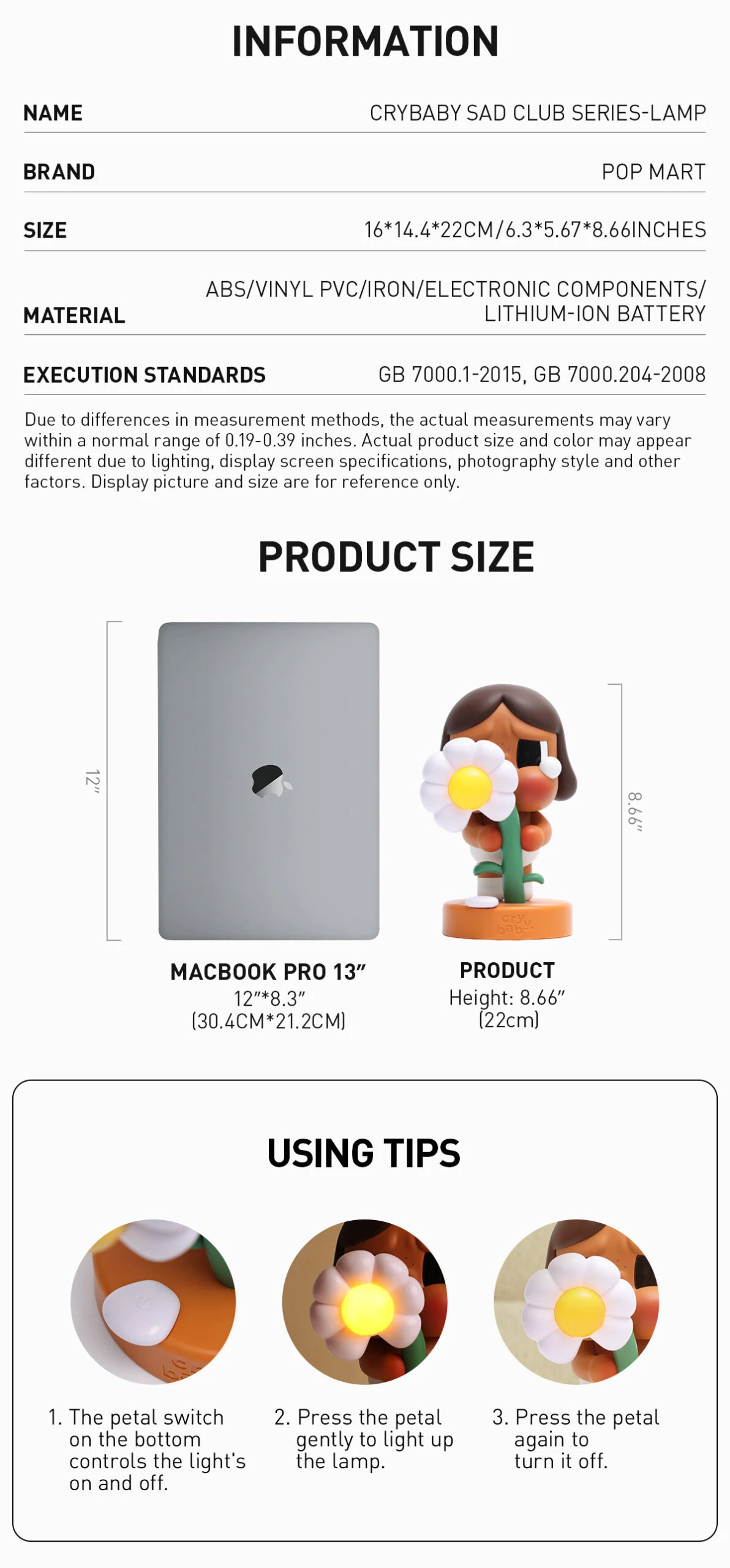 *Due to differences in measurement methods, the actual measurements may vary within a normal range of 0.19- 0.39 inches. Actual product size and color may appear different due to lighting, display screen specifications, photography style and other factors. Display picture and size are for reference only.