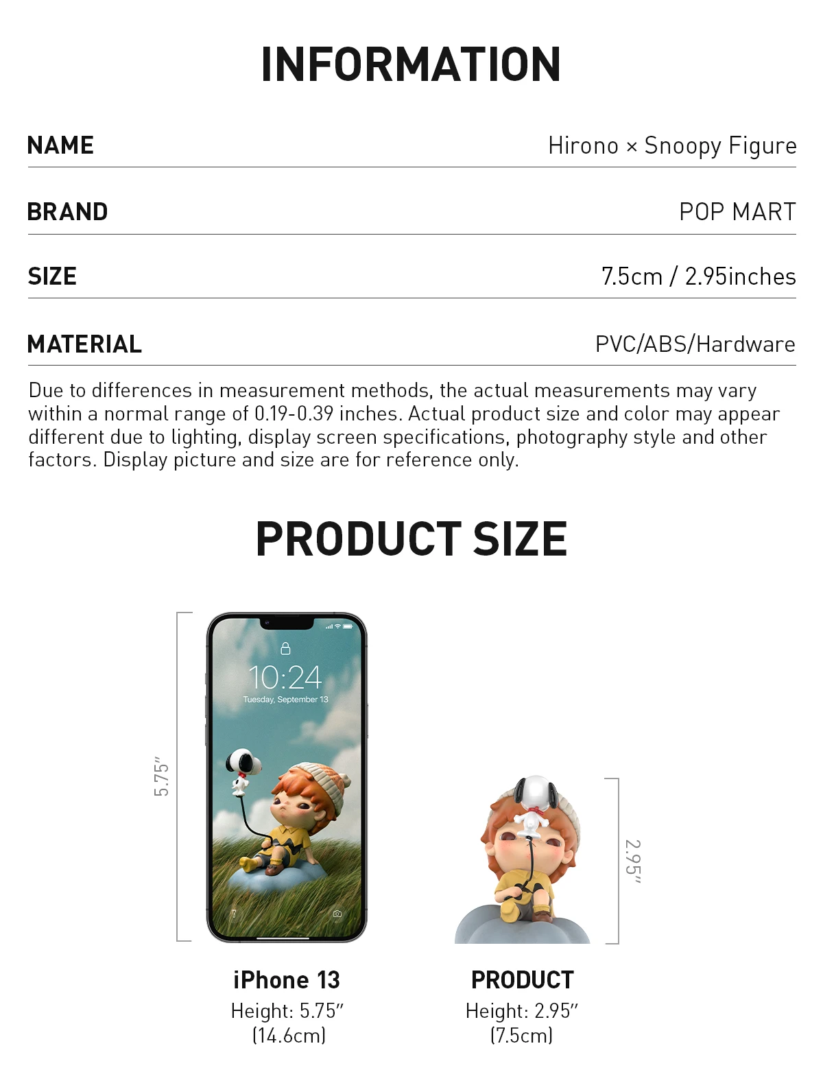 *Due to differences in measurement methods, the actual measurements may vary within a normal range of 0.19- 0.39 inches. Actual product size and color may appear different due to lighting, display screen specifications, photography style and other factors. Display picture and size are for reference only.